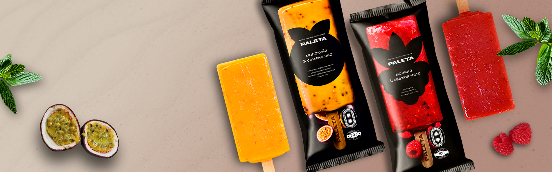"PALETA" десерт замороженный из маракуйи, манго и с семенами чиа